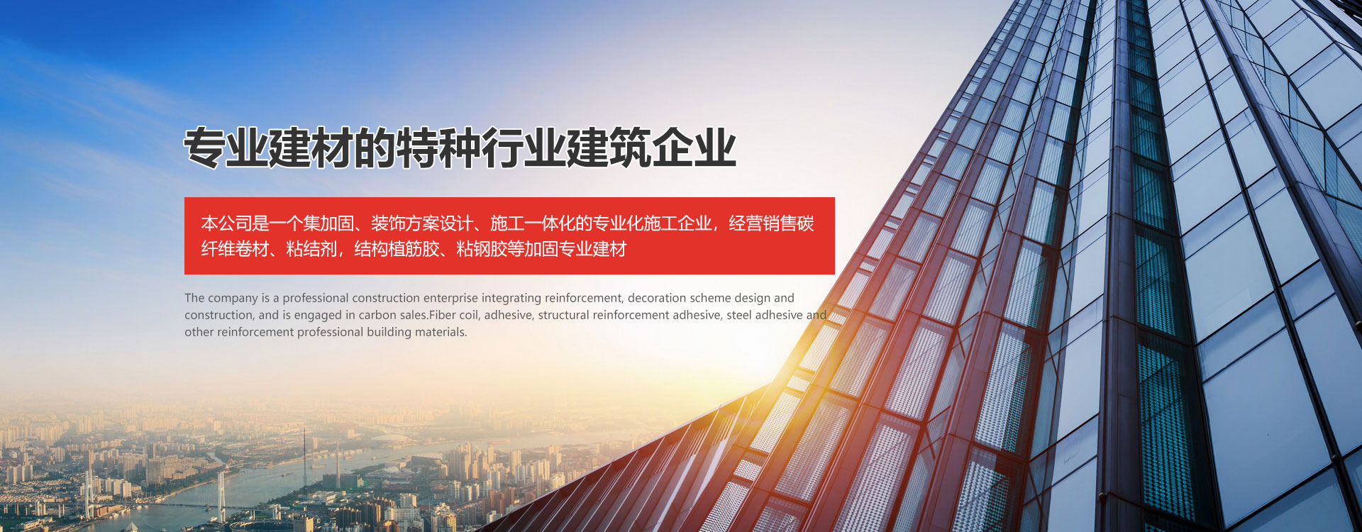 集91视频免费入口、装饰方案设计、施工一体化的专业化施工企业,经营销售碳纤维卷材、粘结剂,结构植筋胶、粘钢胶等91视频免费入口专业建材的特种行业企业。